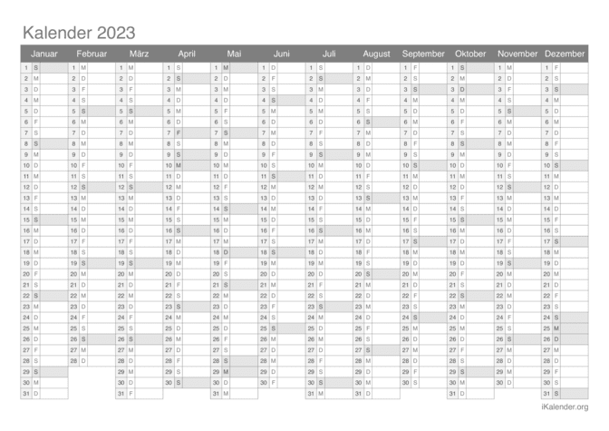 Jahreskalender 2023 zum Ausdruck (DIN A4)